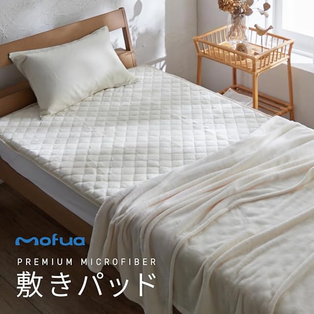 【お布団から抜け出せなくなるやみつきの敷きパッド】シルクより細い超極細繊維を使用することで、ずっとすりすりしていたくなるほど「しっとりなめらかな肌触り」と「あったかさ」を兼ね備えた敷きパッド。高密度に編み上げた繊維にたくさんの空気をためこめるので、あったかさもしっかり。あったかさとモフモフの肌ざわりが迎えてくれるお布団に入るのが毎日楽しみになる敷きパッドです。朝、お布団から出られなくなるのでお寝坊にご注意を。mofua シリーズの毛布と枕カバーのセット使いでさらにあったか。