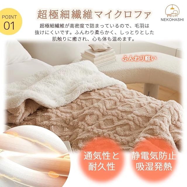 【超極細繊維・軽量て暖かい】】サイズ:約180×200cm 弊社の毛布の暖かさの秘密は超極細繊維にあります。超極細繊維が高密度で詰まっているので、毛羽は抜けにくいです。ふんわり柔らかく、しっとりとした肌触りに癒され、心も体も温めます。ふわふわで良い肌ざわりの生地で、耐久性に優れています。