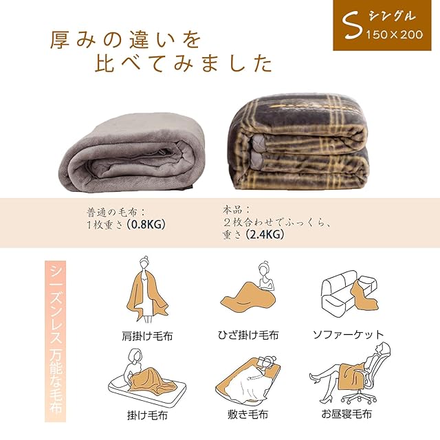 【様々な用途】敷き毛布、掛けもうふ(春 ・ 秋 ・ 夏)、布団の中掛け(冬場)、ソファー用毛布、お昼寝用毛布、車用毛布、肩掛け毛布、ひざ掛け毛布、子供用毛布、いろいろ場面で使えます