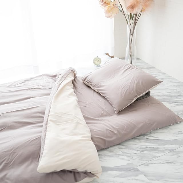 【商品仕様】カラー:ピンク グレージュ のツートンカラー 組成:ポリエステル100% ピーチスキン加工 サイズ:掛けカバー 150×210cm 敷き布団カバー 105×215cm(シングルロングサイズに対応しております) ピロケース 43×63cm (ファスナーを使わない封筒型です)