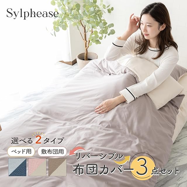 シルフィーズ 布団カバー 3点セット シングル ベージュリバーシブル セット 北欧 掛け布団カバー 敷布団カバー 枕カバー 紐付き 新生活 150×210cm