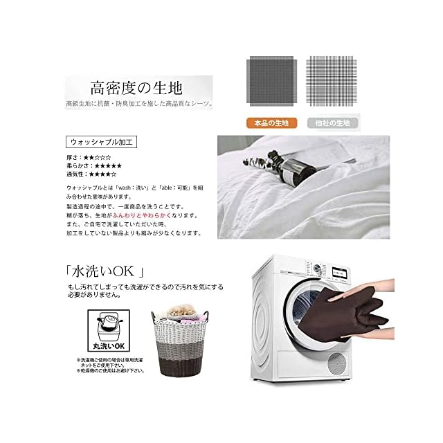 【丸洗い可能 】水洗いにも強い、汚れを気にせずに、ご自宅の洗濯機で丸洗いできるので、いつでも清潔と快適に保てます。洗い替え用に、お客様用に、何枚あっても重宝します。またシンプルで上品な雰囲気もあります。