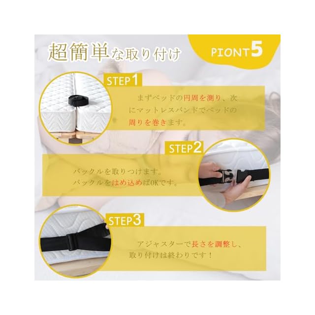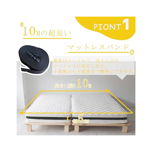 【10mの超長いマットレスバンド】最長10メートルで、市販されているほとんどのマットレスに対応します。また、マットレスバンドの長さ調節は、小家族から大家族まで簡単にできます。長さと幅に応じて調節可能です。