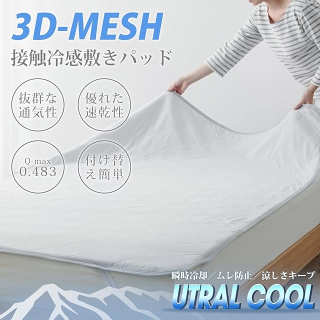 クモリ(Kumori) 強冷感 敷きパッド ダブル 「ULTRA COOL」 夏用 3Dメッシュ 通気性に優れる 熱がこもりにくい ムレない 接触冷感 吸湿速乾 ひんやり エアーパッド 洗える 冷感敷パッド 冷たい ベッドパッド 140X200cm グレー