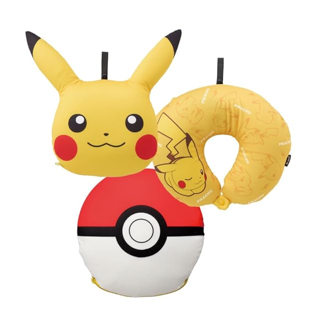 ピカチュウがモンスターボール型のクッションになったり、ネックピローになったりと3WAYで使えるネックピローです