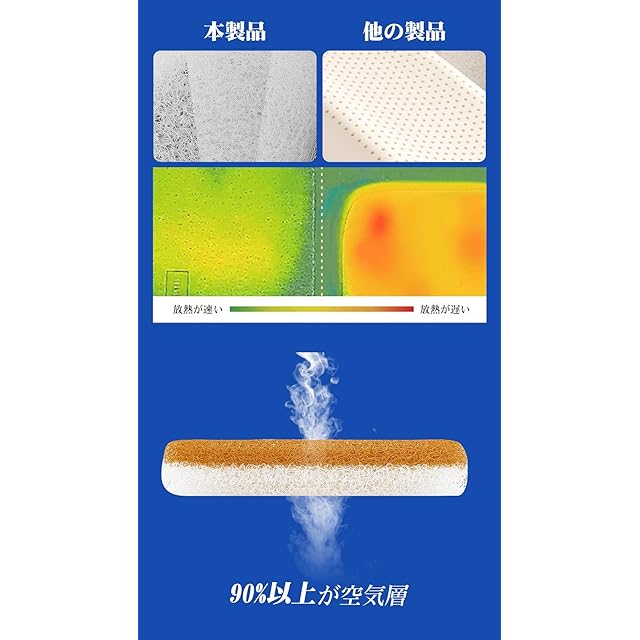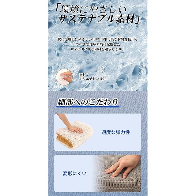 【優れた弾力性・通気性】 立体樹脂ファイバー製を採用。適度な弾力性でへたりにくい! 空気を編むように絡みあわせた構造なので、通気性・速乾性に優れます。 熱や湿気がまくらにこもらず、蒸れにくい構造となっております。地球に優しく清潔。