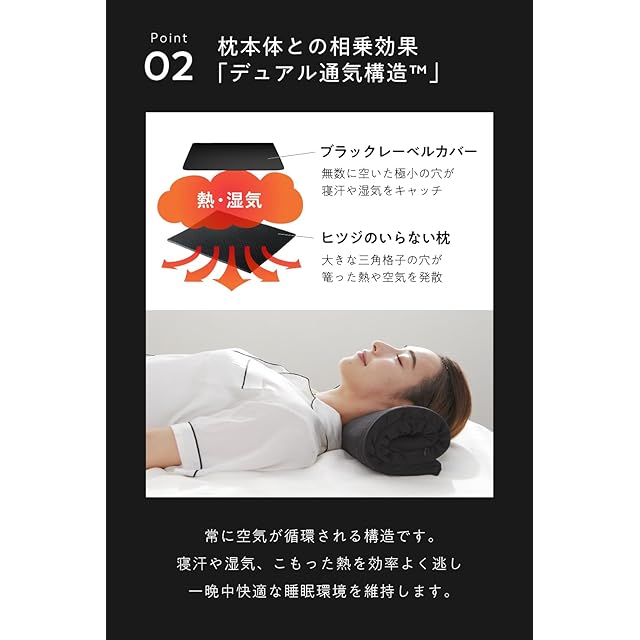 【枕本体との相乗効果「デュアル通気構造」】常に空気が循環される構造です。寝汗や湿気、こもった熱気を効率よく逃し、一晩中快適な睡眠環境を維持します。