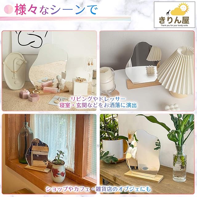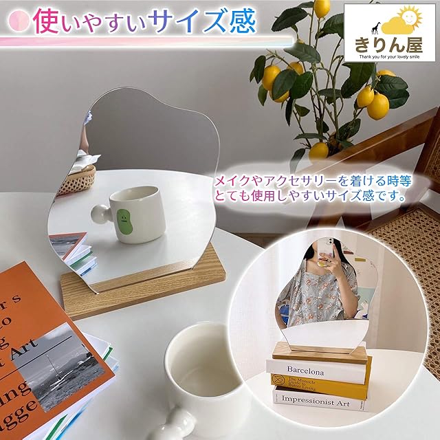 きりん屋 ウェーブミラー 卓上 スタンド ミラー 割れない鏡 インテリア おしゃれ かがみ オシャレ 化粧鏡 北欧 (no1)