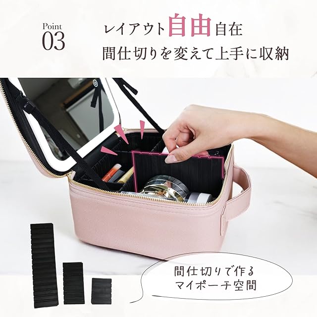 【大容量で機能性抜群!】お持ちのメイク道具の大きさに合わせてレイアウトが変えられる、ミラー付きメイクボックスが新登場♪自由自在に仕切りを配置できるので、使いやすさバツグン◎ ミラー付きで、いつでもどこでもメイクができちゃいます♪