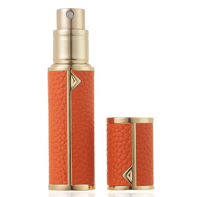 アトマイザー 香水アトマイザー 詰め替え SINMONS 香水噴霧器 2-2.5mm径 5ml PUレザー レディース メンズ (オレンジ)