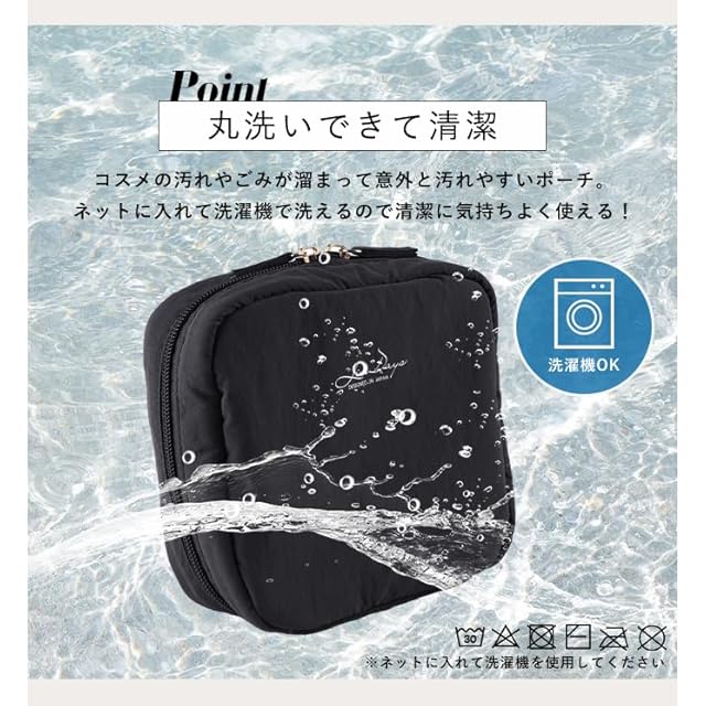 コンパクトな見た目ですが、ベースからポイントメイクまで フルアイテム入る収納力。旅行・出張やお泊りはもちろん ジムや職場のロッカーなどどの置きポーチとしても便利です。 丸洗いOKなので汚れてもお手入れ簡単。いつでも清潔に保てます。