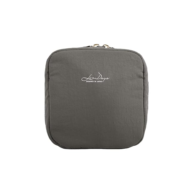 [リズデイズ]化粧ポーチ メイクポーチ 大容量 スクエア ポーチ 大きめ フルメイク収納 縦型ポーチ 自立 洗える(ダークグレー)