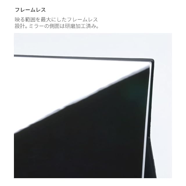 【メイクアップアーチストが愛用】プロモデル折立ミラーは美容部員やメイクアップアーチストが愛用するモデル。ミラーに無駄なフレームを無くすことで商品サイズに対して最大の有効ミラーサイズを実現。とにかく広くて見やすいので快適にメイクが出来ます。使い終われば1.5センチの厚みになりコンパクトに収納が出来て持ち運びに便利です。