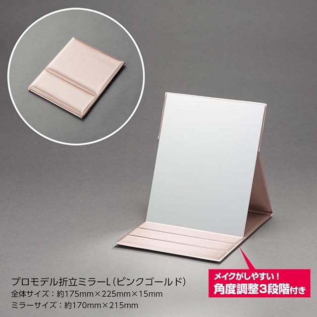 堀内鏡工業 メイクアップアーチスト愛用 プロモデル折立ミラー 化粧鏡 Lサイズ ピンク ホワイトデー 誕生日 ギフト