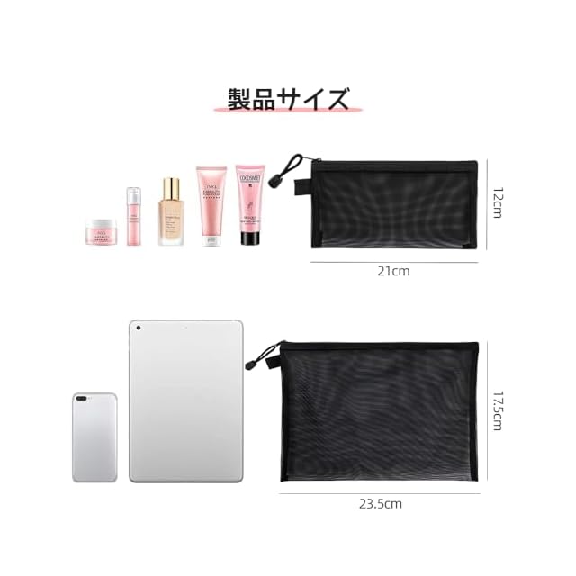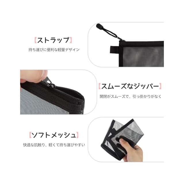 【透明ネットクロスは探しやすい】このポーチは半透明のネット糸を採用しているので、簡単にアイテムを探したり探したりすることができます。