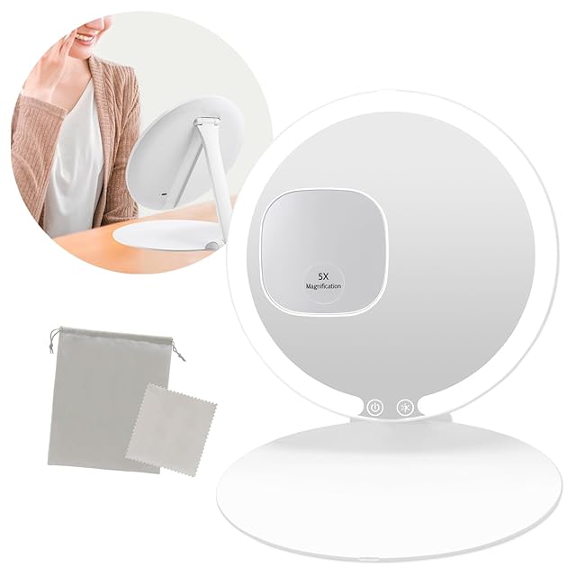LEDライト付き メイクミラー 持ち運び 卓上ミラー 5倍 拡大ミラー セット 化粧鏡 USB 充電式 Type-C 丸 コンパクト 携帯 おしゃれ