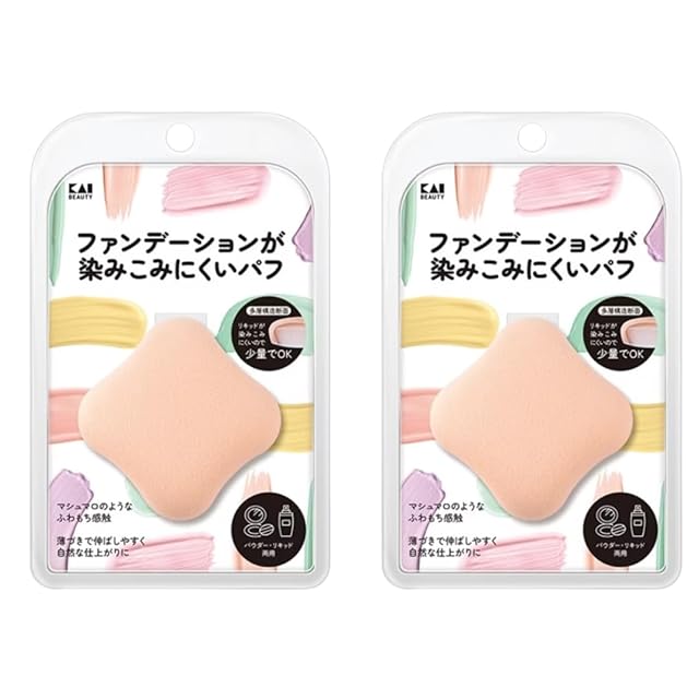 【まとめ買い】2個 セット 貝印 ファンデーションが染み込みにくいパフ ひし形 2層構造 KQ3248