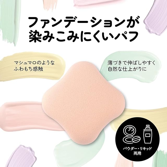 他の方のレビューも良いのでかなり期待してましたが、リキッドファンデまぁまぁ吸います。 クッションファンデのパフみたいなのを想像してましたが、フワフワなマシュマロ的なパフでした。 ケース的なものは無いので、ビニールのポチ袋に収納してます。