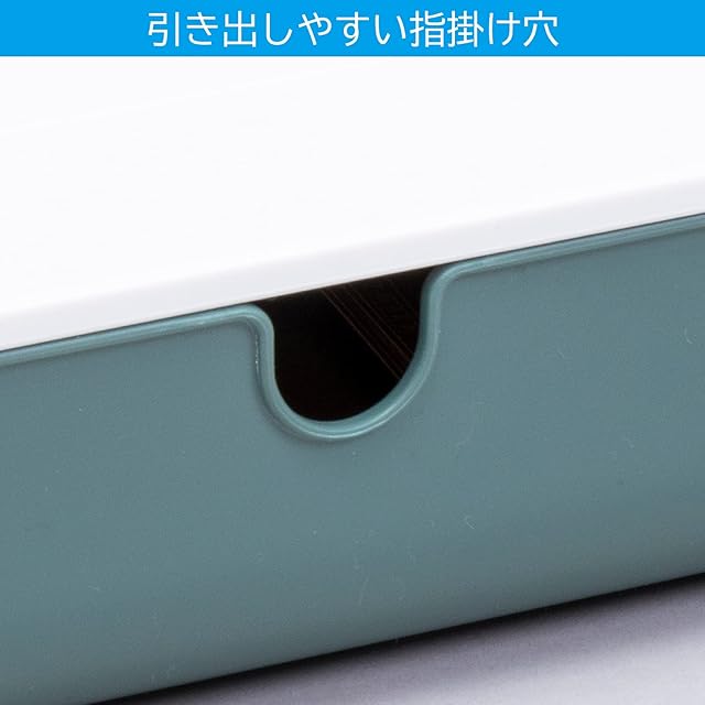 【スライド式・引き出しやすい指掛け穴】:スライド式・指掛け穴付きでかんたんにサッと引き出せる。固定シール付き。