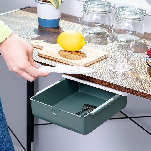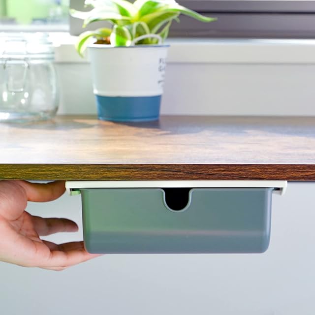 【好きな場所に取り付けられる引き出し】:テーブル、食器棚、デスク下などの空きスペースに取り付けられる引き出し。
