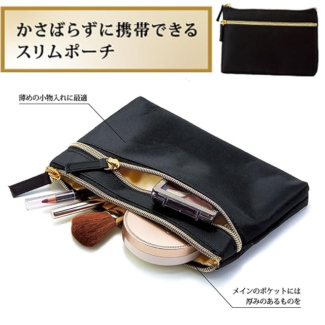 コスメポーチ 化粧ポーチ 薄型 平型 おしゃれ スリムポーチ 12×18×2cm