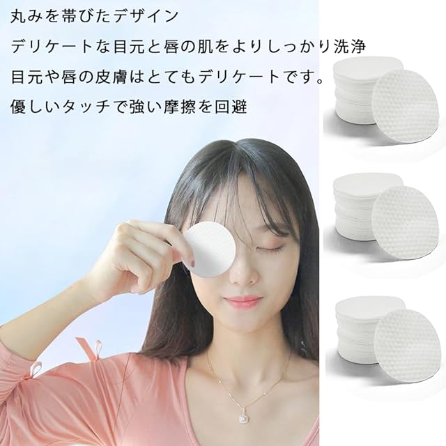 1.【セット内容】:化粧コットン×100枚 。コットンサイズ:6×6 cm(韓国コスメトナーパッドと同じサイズサイズなので、韓国コスメトナーの再利用可能な容器に入れることができます。) 2.【なめらかな面や凹凸エンボス面‐両面兼用】低摩擦のなめらかな面には化粧水パッグ用に利用可能で、高摩擦の凹凸エンボス面に拭き取り用に使えます。 3.【多用途】:様々なスキンケアに使用でき、メーク落としシート、コットン拭き取り用、化粧水用コットン、ネールオフ用コットンなどとして利用でき、メイクアップリムーバー、化粧水やトナーなどを追加することができます。 4.【薄型耐久性もある】丸型薄型のcotton pads for faceは、軽量化され外出先での携帯便利です。長繊維のコットンを使用しているので、耐久性に優れ破れにくいです。 5.【一枚多用途】拭き取りパッドが色々な場合に活用しています。メーク落としシート、コットン拭き取り用、化粧水用コットン、ネールオフ用コットンなどとして利用できます。