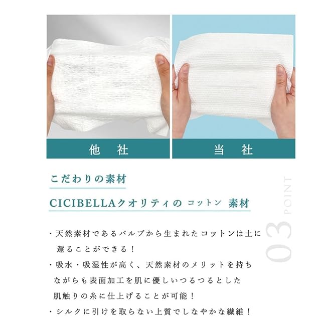 商品名:cicibella 使い捨て コットン 顔拭きシート クレンジングタオル フェイシャルタオル cotton 使い捨てフェイスタオル ふきとり用 コットンティッシュ 化粧コットン 洗顔タオル (200mm*200mm, 60枚*3)