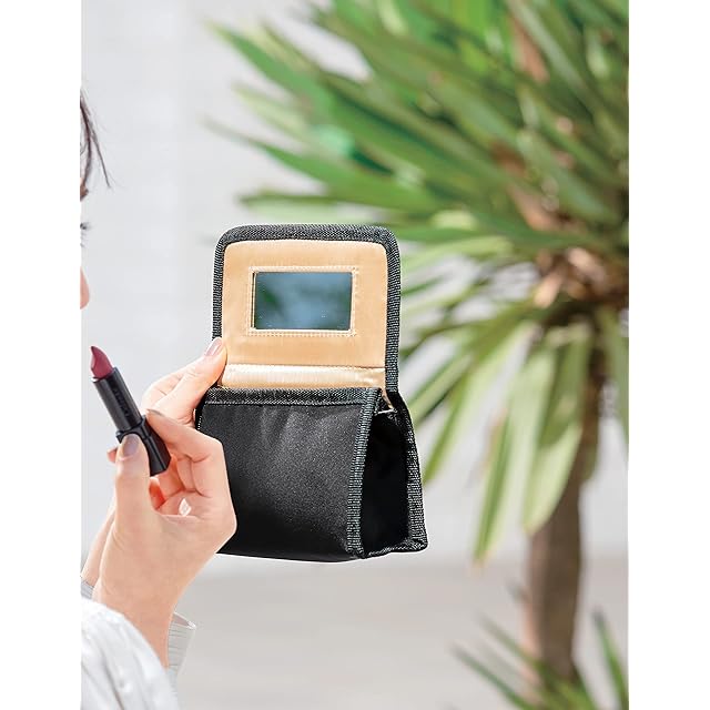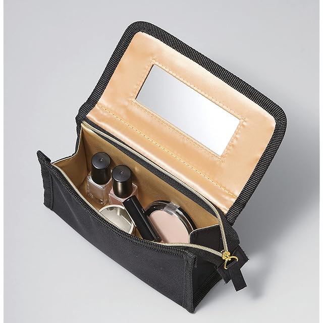 素材:ポリエステル、鏡:ガラス(表布サテンブラック、裏布ゴールドの2色ツートンが高級感を演出するゴールドシリーズ。)