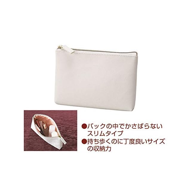 CLARTE スリム 薄型 コスメポーチ 化粧ポーチ 小物入れ 裏側 ピンクゴールド コンパクトなサイズ ホワイト 1個 (x1)