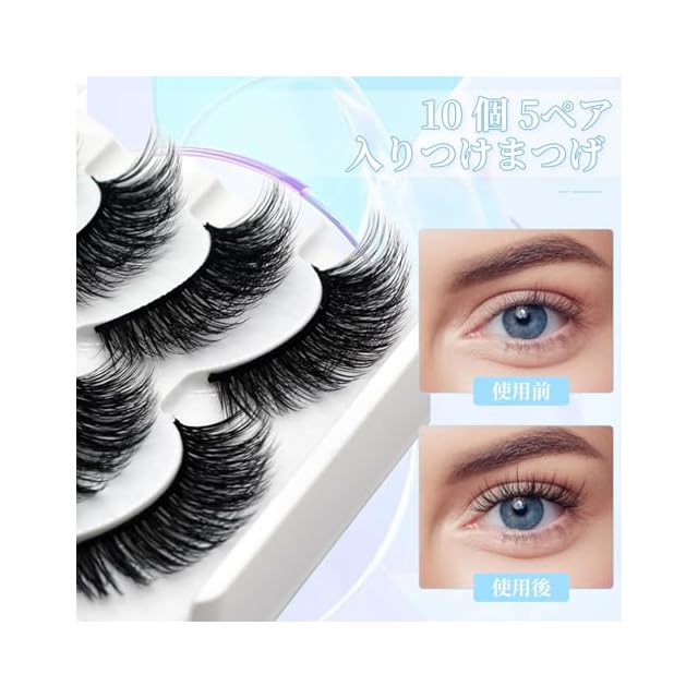 使用方法: あなたの目線とまつ毛を比較して、適切な長さと幅にカットします。 必要ならば綿棒でまつげに沿って接着剤を塗布します。あなたの自分があるまつげの根元にまつけをつけて、必要ならば軽く押し付けてください。