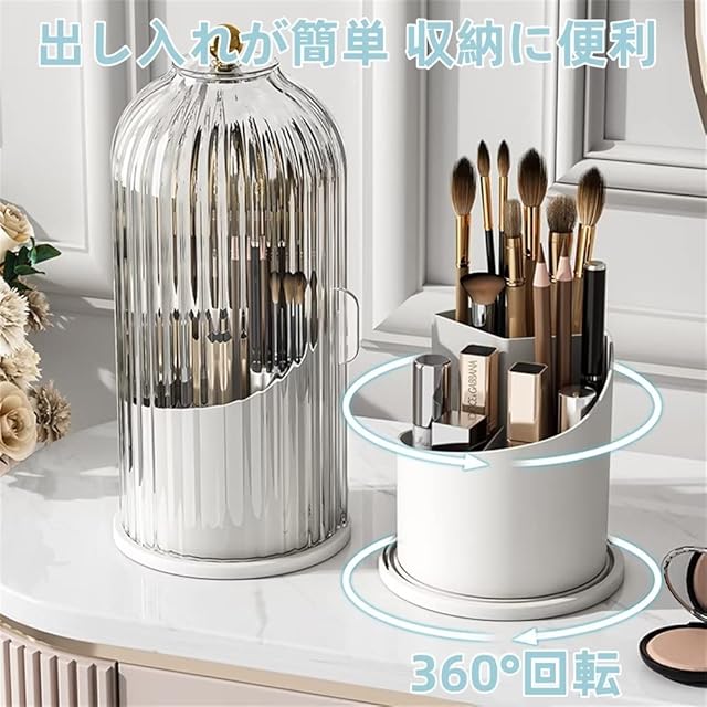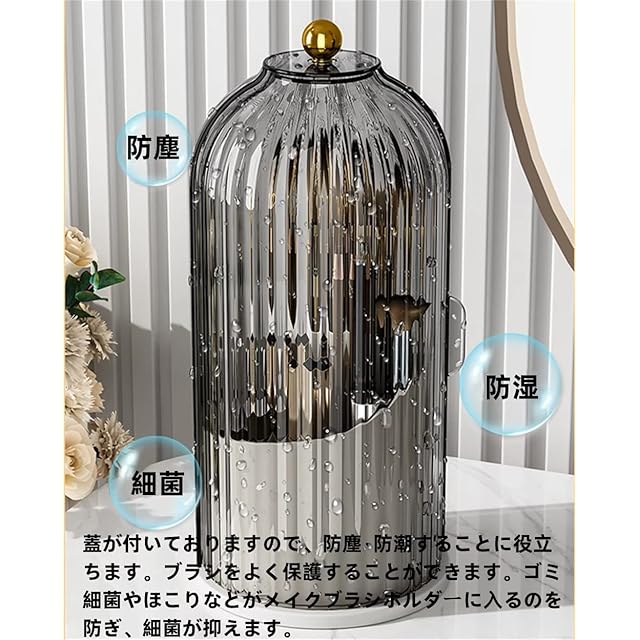 【デザイン】メイクブラシスタンドは透明な蓋デザインで、透明の素材で見やすく、閉じても中の化粧品やブラシが一目でわかって、メイクブラシの展示こともできます。高級感があるデザインで部屋を綺麗に飾ってます。
