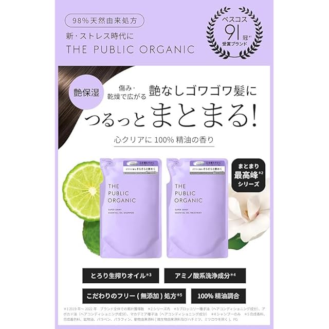 ザ パブリック オーガニック シャンプー トリートメント 詰め替え セット 【スーパー シャイニー】 [ツヤ 保湿] 400mL + 400mL アミノ酸 アロマ 精油 無添加 ヘアケア 日本製