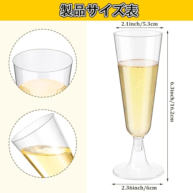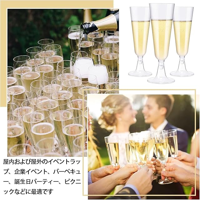 大量供給: 各パックにはパーティーに最適なシャンパン フルート 50 本が入っています。個人使用として家に保管したり、家族や友人と共有したりできます。容量 150 ml なので、どんなパーティーでもシャンパンで乾杯できます。