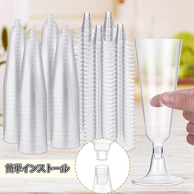 (100個 150ml)使い捨て赤ワイングラス 透明ワイングラス 組み立て ホリデー パーティー 旅行 ピクニック ウェディング用品 シャンパングラス 硬質プラスチックカップ