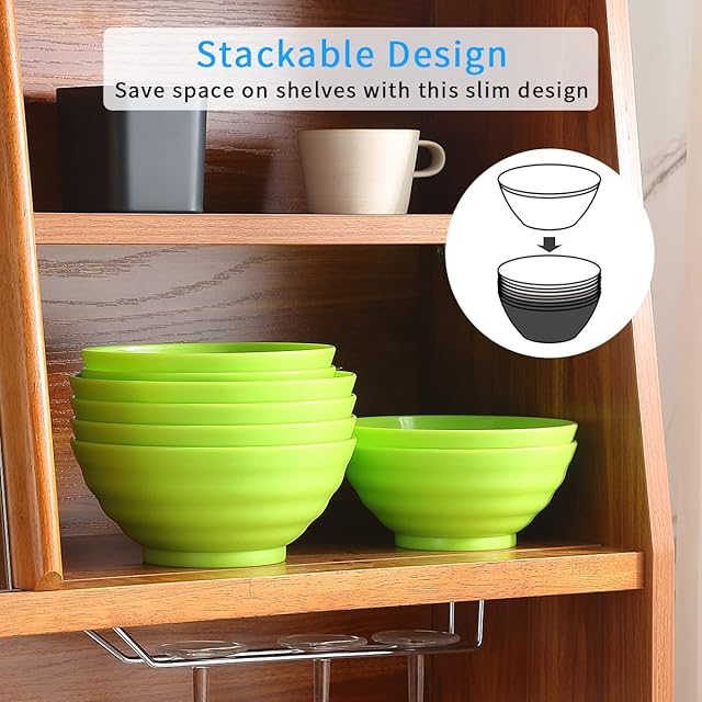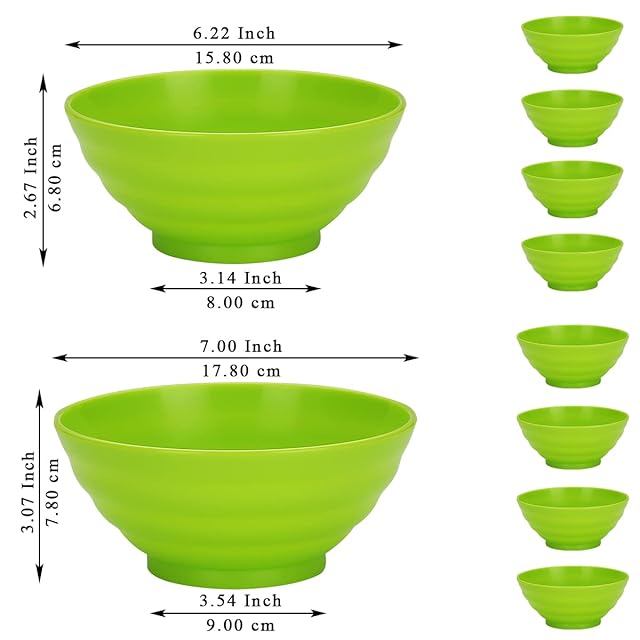 Evanda ボウル 8個セット ライトグリーン 500ml&1000ml 壊れない食器 皿 椀 PPプラスチック ポリプロピレン シリアル サラダ スープ 果物 耐熱 耐冷 電子レンジ 食洗機 対応