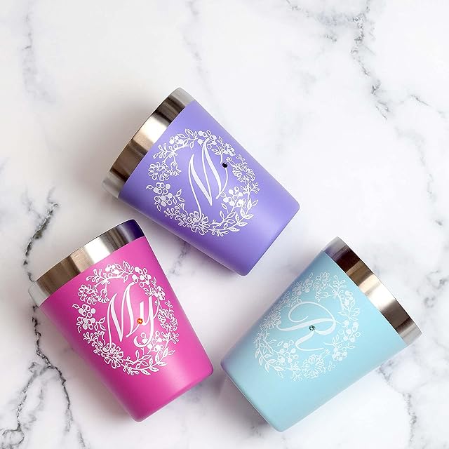前畑 タンブラー イニシャル ステンレス 真空断熱 ラインストーン My 350ml ニュイ