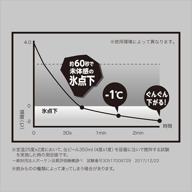 冷凍庫で凍らせたジョッキに飲みものを入れるとあっという間に氷点下。
