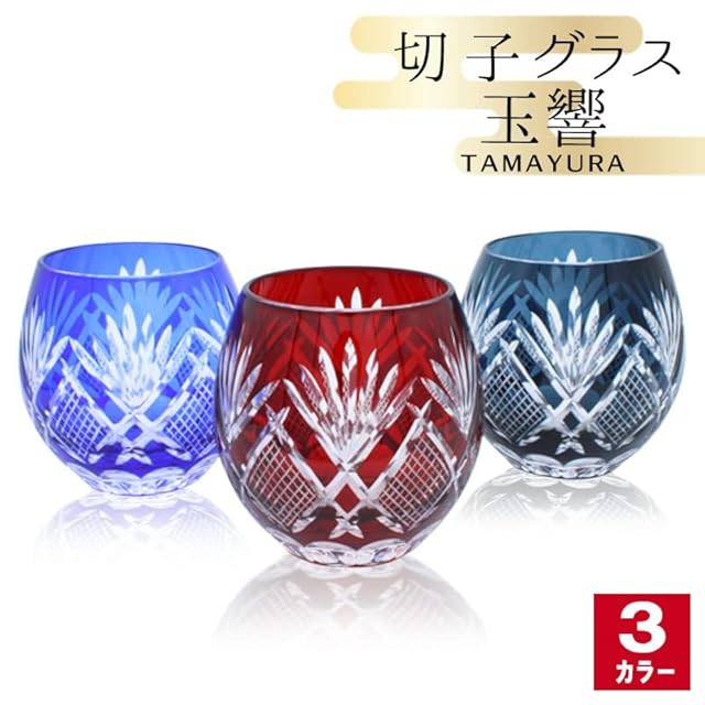 切子 キリコ 切子グラス 切り子 ロックグラス 冷酒 焼酎 水割り お湯割り 祝い 誕生日 還暦 還暦祝い プレゼント ギフト 切子玉響 (ブルー)