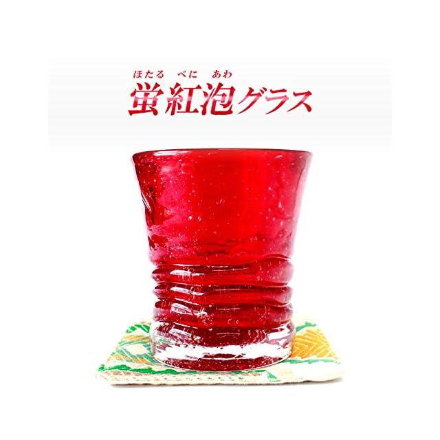 くば笠屋 琉球ガラス 琉球グラス ロックグラス 蛍石入り 沖縄土産 蛍紅泡グラス 蓄光 光る