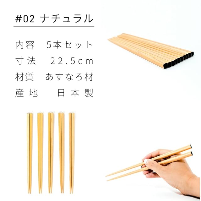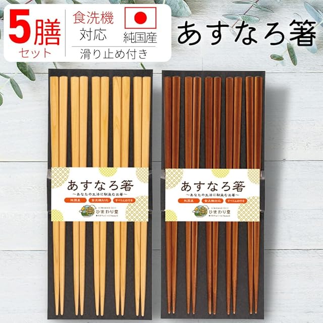 ひまわり堂 お箸 5膳セット あすなろ箸 日本製 (ナチュラル)