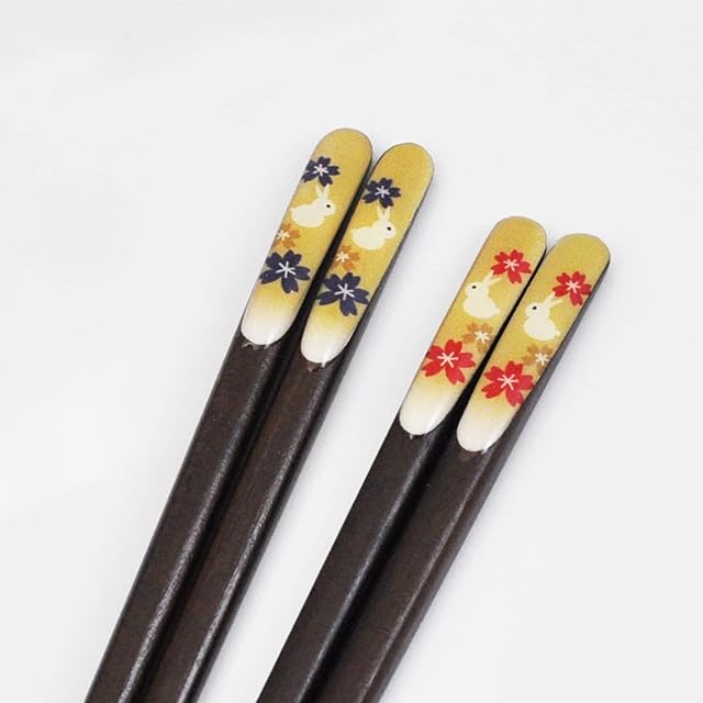 一双 夫婦箸 塗り箸 吉兆 桐箱 楽うさぎ 2膳 日本製