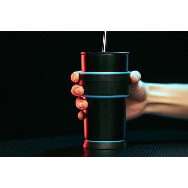 商品名:ピーコック ゲーミング タンブラー ストロー付き 550ml 真空断熱 保温 保冷 スポーツドリンク 対応 炭酸飲料 対応 ブルーブラックATX-R55 AB