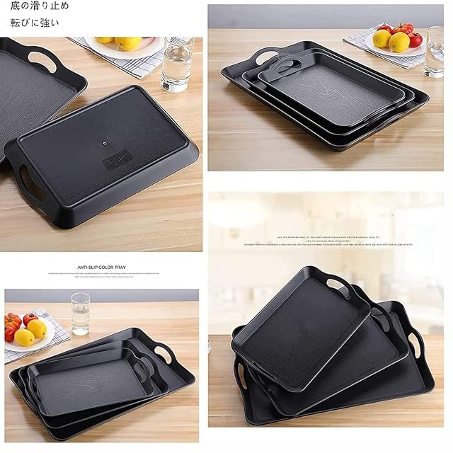 商品名:卓上用トレイ 盆 ランチョン トレー プラスチック製 トレー お盆 トレイ おしゃれ 軽量 小物入れ 大 中 小 きい 深い 長方形 四角 和風 北欧 洋風 トレイ インテリア すべらない 洗える カフェ ティー カフェ 業務用 家庭用 (黑, M)