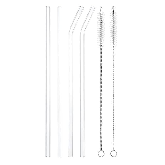 商品名:uxcell 再利用可能ストロー ガラスストロー 飲みストロー 凍結発泡茶飲料用 洗浄ブラシ2本付き 250x8mm 4本入り