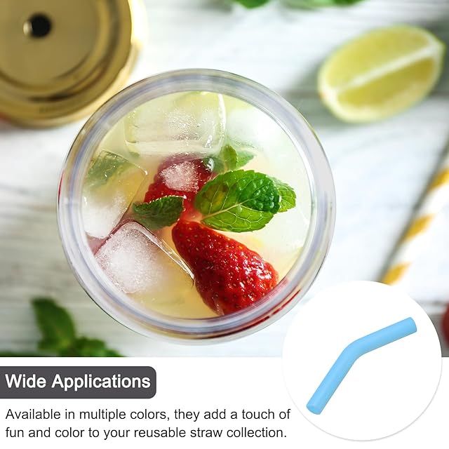 情報: 材質: シリコーン; 外径:8 mm; 内径:6 mm; 高さ:87 mm; カラー: スカイブルー; パッケージ内容:8個 x 再利用可能なシリコンストローエルボチップ