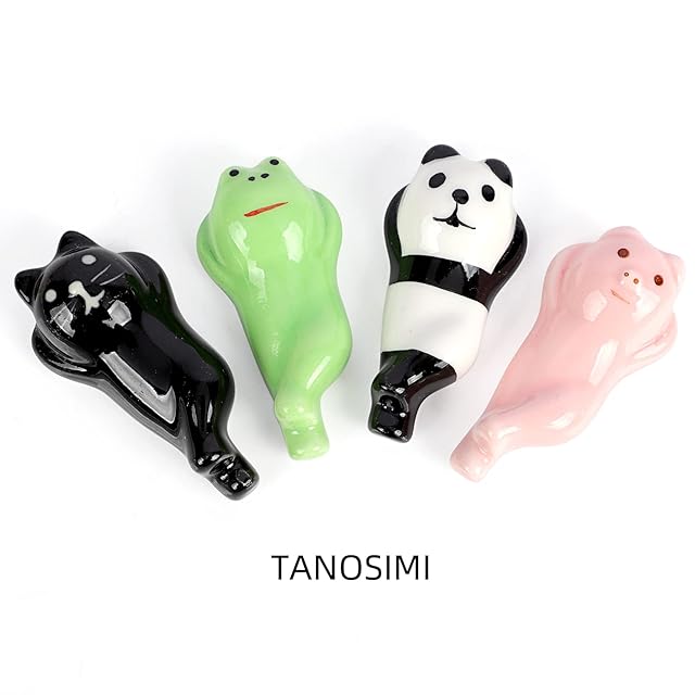 Tanosimi 箸置き 可愛い ゴロ寝 4個セット カエル パンダ ブタ ネコ