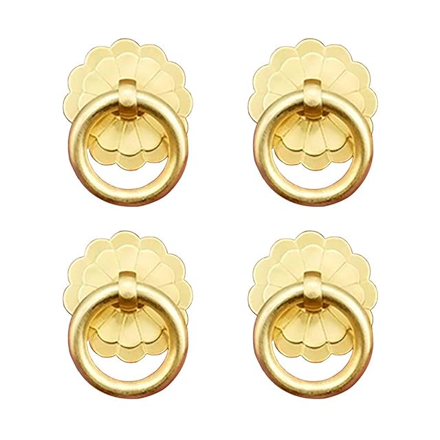 CUTOOP 4個入 真鍮 取っ手 アンティーク ラウンドハンドルハンドルキッチンキャビネットワードローブ引き出し家具ハードウェアレトロなスタイルプルリング (きんいろ)