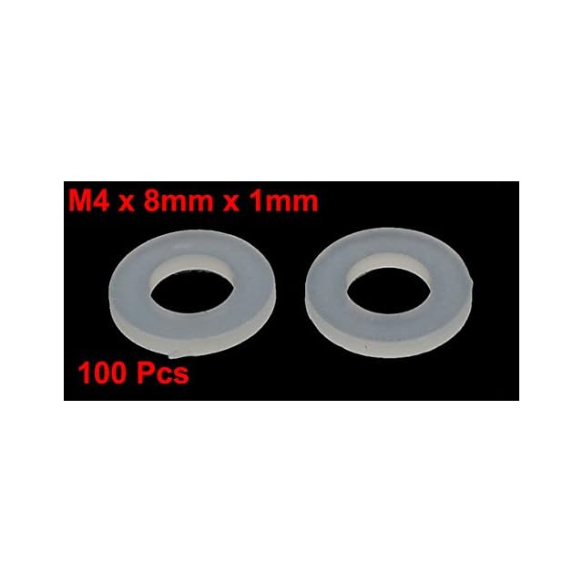 uxcell 絶縁ワッシャー スペーサー ファスナー M4 x 8mm x 1mm ナイロン フラット グレーホワイト 100個