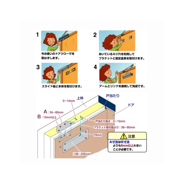 ●タイプ: パラレル型 ●勝手: 左右兼用 ●耐久性: 30万回 ●ストップ角度: 70~180度まで ●適合扉: スチールドア ●適合扉幅(mm): 900以下