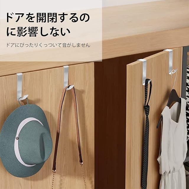 【便利に収納】使う頻度の高い衣服やバッグなどの収納にピッタリです。ドアにかけておけば上着などを気軽にかけられ、忘れ物の心配がなくなります。4個セットになっているので、リビング・トイレ・台所・ランドリールームなどお好きな場所にお好きな数を取り付けることが可能です。どんな場所でも必要な物をかけられるのでお部屋の収納をスマートに対応できます。C